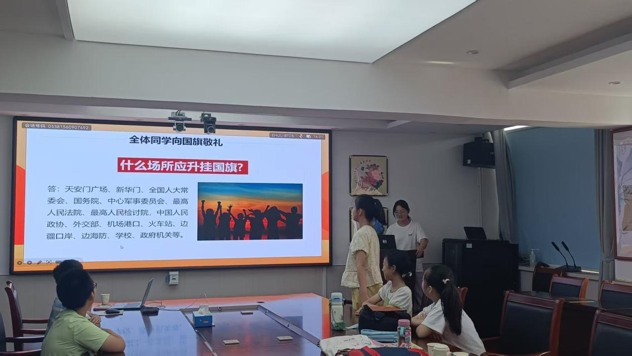 讲述、互动、感悟——内容鲜活生动,氛围庄重热烈。实践队队员率先以“百年党史中的青春力量”为主题开讲,通过革命先辈的青春故事、体育事业中的红色印记等鲜活案例,将党史知识转化为可触可感的成长养分,引来学生们的专注聆听。为让不同年龄段的学生都能深入理解,队员们提前设计了三级学习方案:基础组“党史故事·初心启蒙”、进阶组“精神解读·信念培育”、实践组“行动感悟·责任传承”。随后,队员们按学生认知水平分组,从党史脉络梳理、红色精神内涵到当代青年使命,逐一耐心讲解引导。