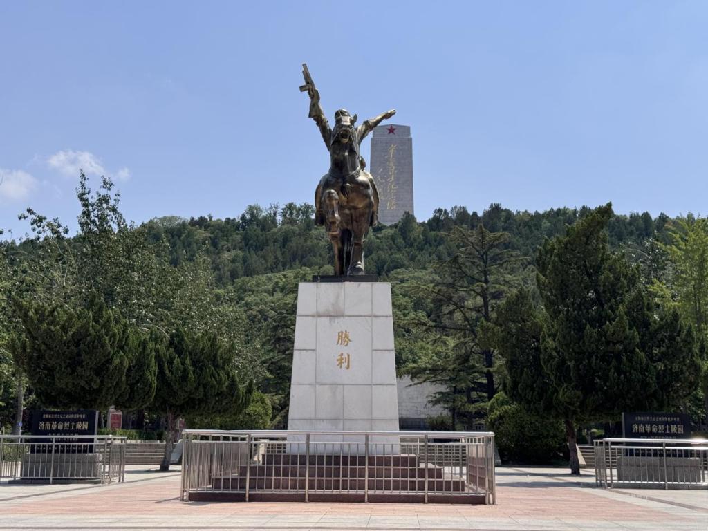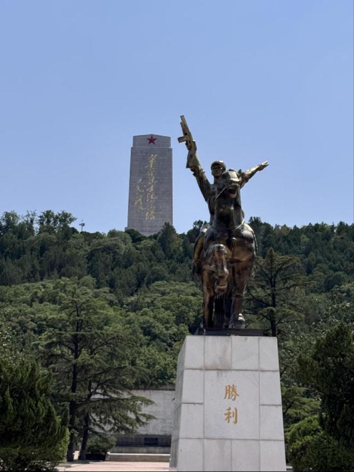 纪念碑旁,一尊骑马造型的雕塑格外醒目 —— 战马昂首挺立,骑手身姿昂扬,雕塑上 “胜利” 二字在阳光下熠熠生辉,无声诉说着革命胜利的来之不易。队员们驻足雕塑前,凝视着这定格胜利瞬间的艺术作品,讲解员细致讲述着雕塑背后承载的革命历史与英雄故事,让队员们深切体会到 “胜利” 二字背后凝聚的牺牲与坚守。