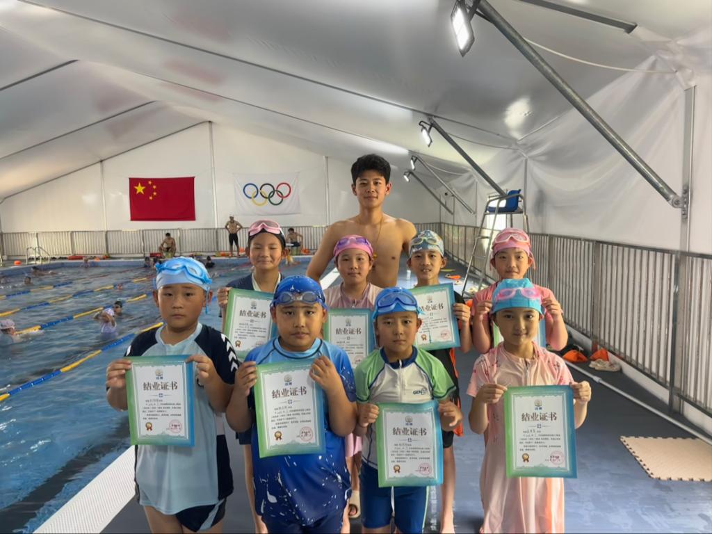 泳池里的水花渐渐平息,公益游泳课在孩子们的笑声中落下帷幕。带着一身水珠和满满的成就感,孩子们挥手与队员们道别,眼里闪烁着对下一次水中畅游的期待。这场公益课不仅让孩子们初识游泳的乐趣、掌握了基础的自救技能,更在他们心中播下了热爱运动、勇于挑战的种子。而对于实践队的队员们来说,将专业知识化作守护与陪伴,用汗水浇灌孩子们的成长,便是这场公益之行最珍贵的收获。未来,这份与水有关的温暖还将继续传递,让更多孩子在阳光下拥抱碧水,在运动中收获力量。