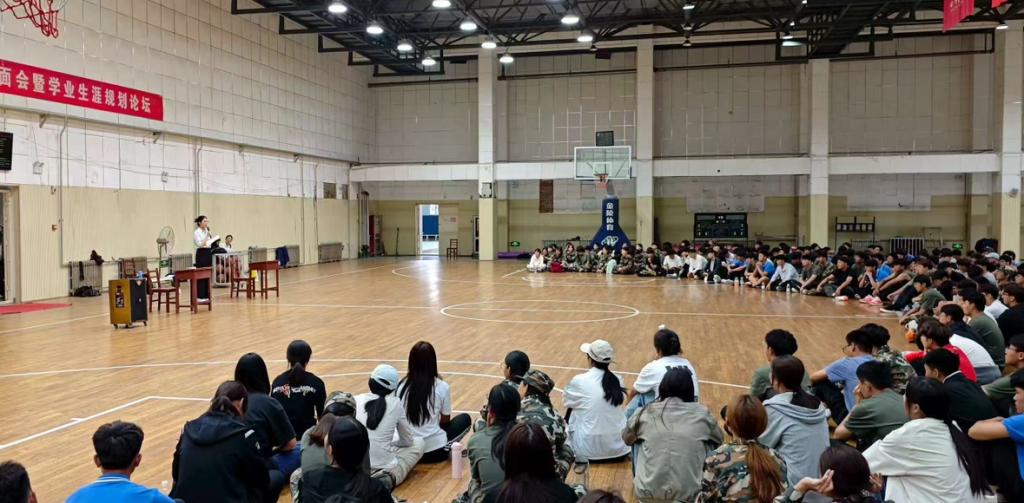 专业特色与新生实际情况,以“从‘新’出发,向阳成长”为核心,用轻松亲切的语言拉近与新生的距离。她首先围绕“大学生活与高中生活的差异”展开,从学习节奏调整、人际关系建立、自主时间管理三个维度,结合过往学生案例,细致分析了新生可能面临的适应难题,如训练与学习的平衡、陌生环境中的孤独感等,并给出“制定阶段性小目标”“主动参与社团活动”“学会高效沟通”等具体应对建议。