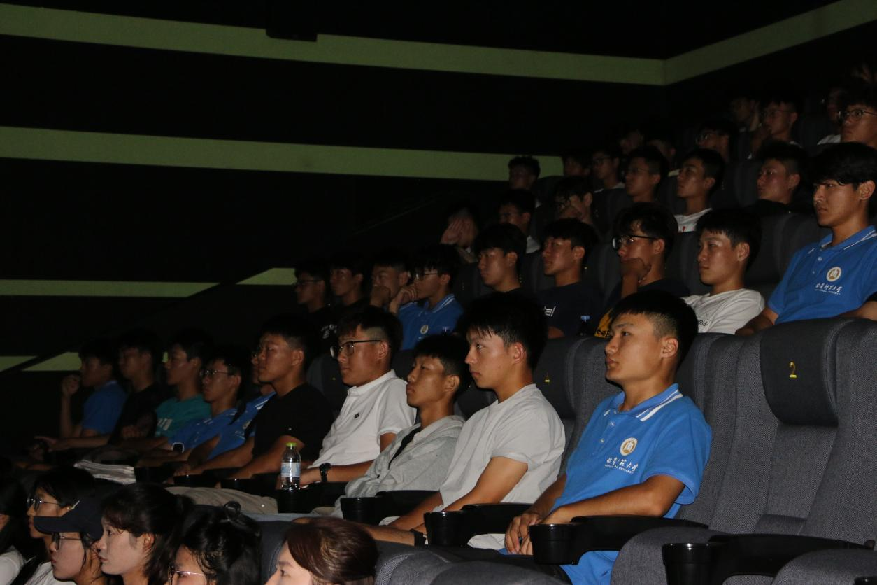 随后电影放映,影厅气氛凝重,新生们被剧情深深牵动,面对日军暴行时难掩愤怒,看到百姓坚守正义时眼眶湿润,深刻体会到和平的珍贵。