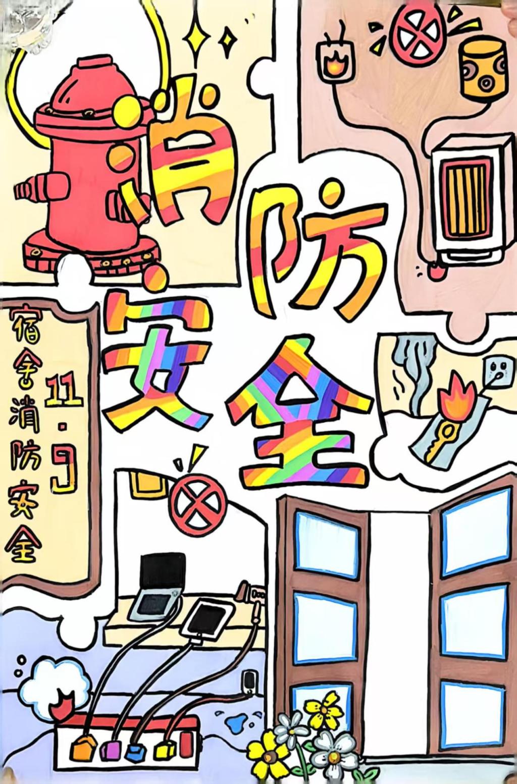 本次 “创意绘安全,‘宿’守伴同行” 海报设计活动的举行,兼具宣传价值与实践意义,让消防知识通过视觉化形式深入人心,有效提升了师生的消防安全意识和应急避险能力,让学生在创作中学习消防知识,在传播中凝聚安全共识,为构建平安校园注入青春动能。