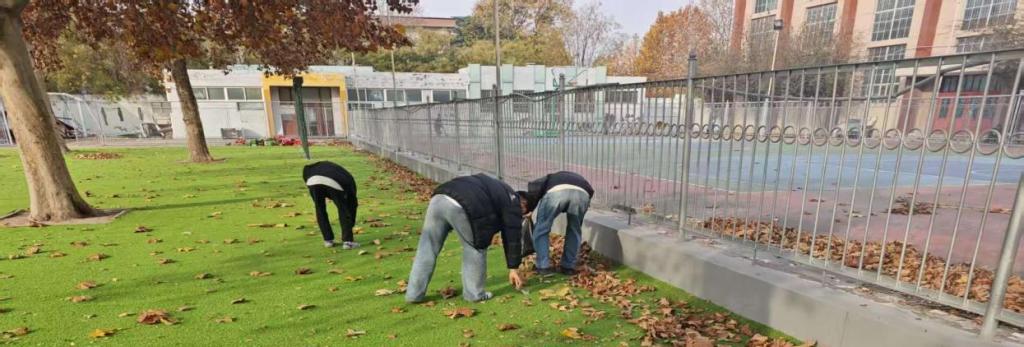 活动伊始,志愿者们准时齐聚学院楼前广场签到集合,工作人员有序分发手套、垃圾袋等清洁工具。现场完成分组及责任区域分配后,志愿者们迅速投入行动,按照既定规划奔赴校园各处开展清扫工作。在操场、绿化带、主干道等区域,大家弯腰捡拾纸屑、塑料瓶等垃圾,细致清理落叶杂物,用双手为校园“除尘焕新”。