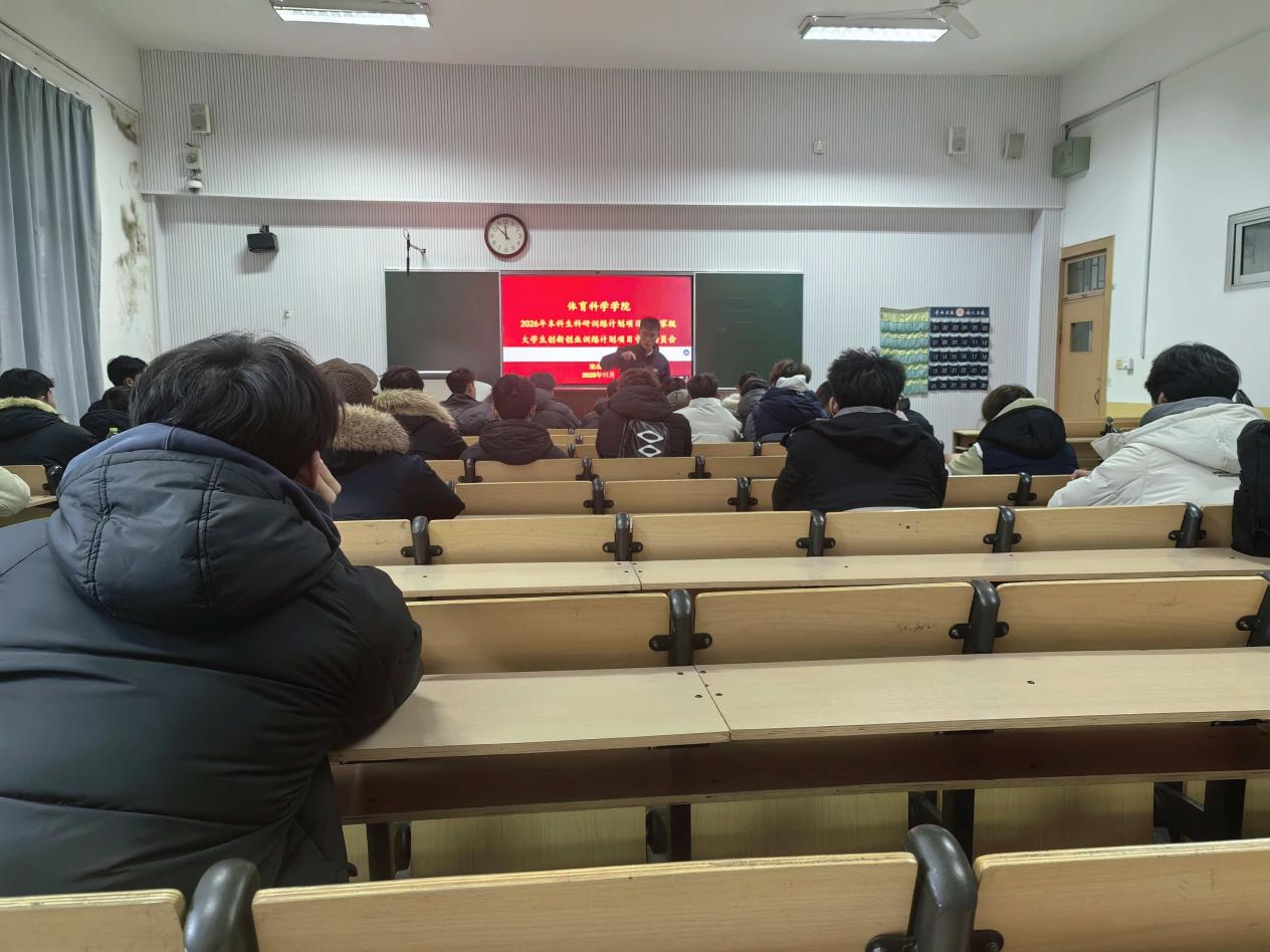 会上,栾永鑫老师系统讲解了大创项目的申报流程和注意事项,鼓励学生在体育科技、体育教育和运动训练等方面进行探索和尝试。