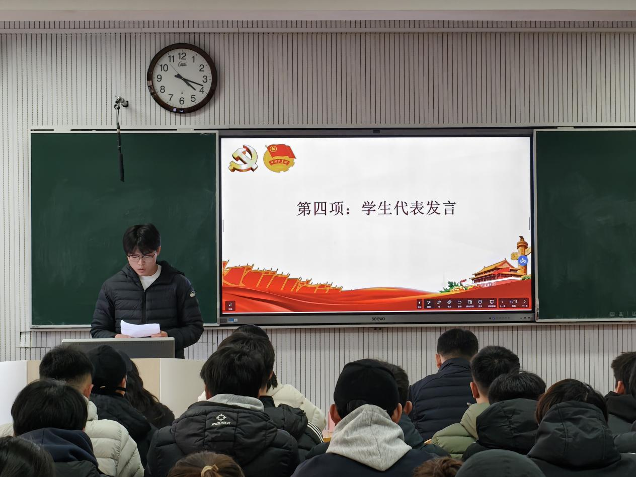2024级体育教育四班的刘凯作为学生代表发言。他结合自身入学以来的学习体验与团学工作感悟,分享了对青年责任与成长价值的理解,表达了珍惜培训机会、主动汲取知识、积极践行担当的坚定意愿。