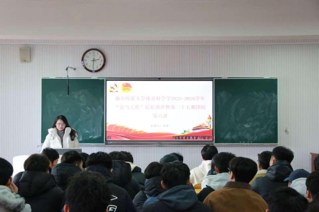 培训伊始,刘京紧扣“青马工程”育人核心,结合党团思想引领要求与体育学科特色,围绕党的二十届四中全会精神展开深度分享:一方面立足理论维度,解读全会“统筹推进群众体育和竞技体育全面发展,加快建设体育强国”的战略部署,阐释新质生产力赋能体育产业高质量发展的核心逻辑,明确“以全会精神为指引、以体育强国为使命”的培养主线;另一方面结合体育专业实际,引导学子思考如何将专业所长与全会要求精准对接——既可以依托数字化、智能化技能参与智慧体育场景搭建、智能运动装备推广,也能在全民健身普及、体育赛事服务、体育文化传播中践行“以人民为中心”的发展理念,让全会精神转化为体育青年挺膺担当的具体行动。